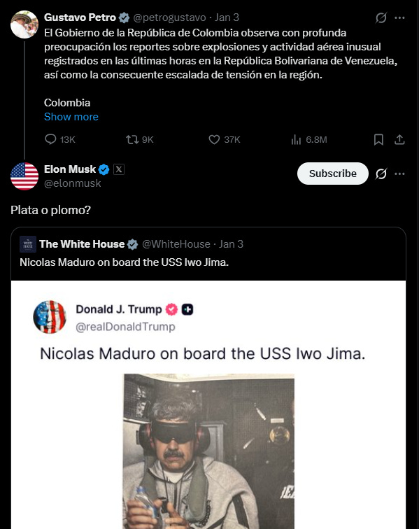 The capture of Maduro makes it clear to Latin American countries that the Chinese, international law, or even their own security services cannot protect them. By seizing Maduro, the Americans have reminded every Latin American leader of just how much they could personally lose if they defy the USA. From the American perspective, this will help compel remaining leaders in Venezuela to cooperate, especially given that Maduro, under interrogation, will likely reveal all manner of secrets. The message to the world, and to Venezuelans, is that there is only American law, based on American power. The American Empire is supreme, not the “rules based international order” or “international law”.